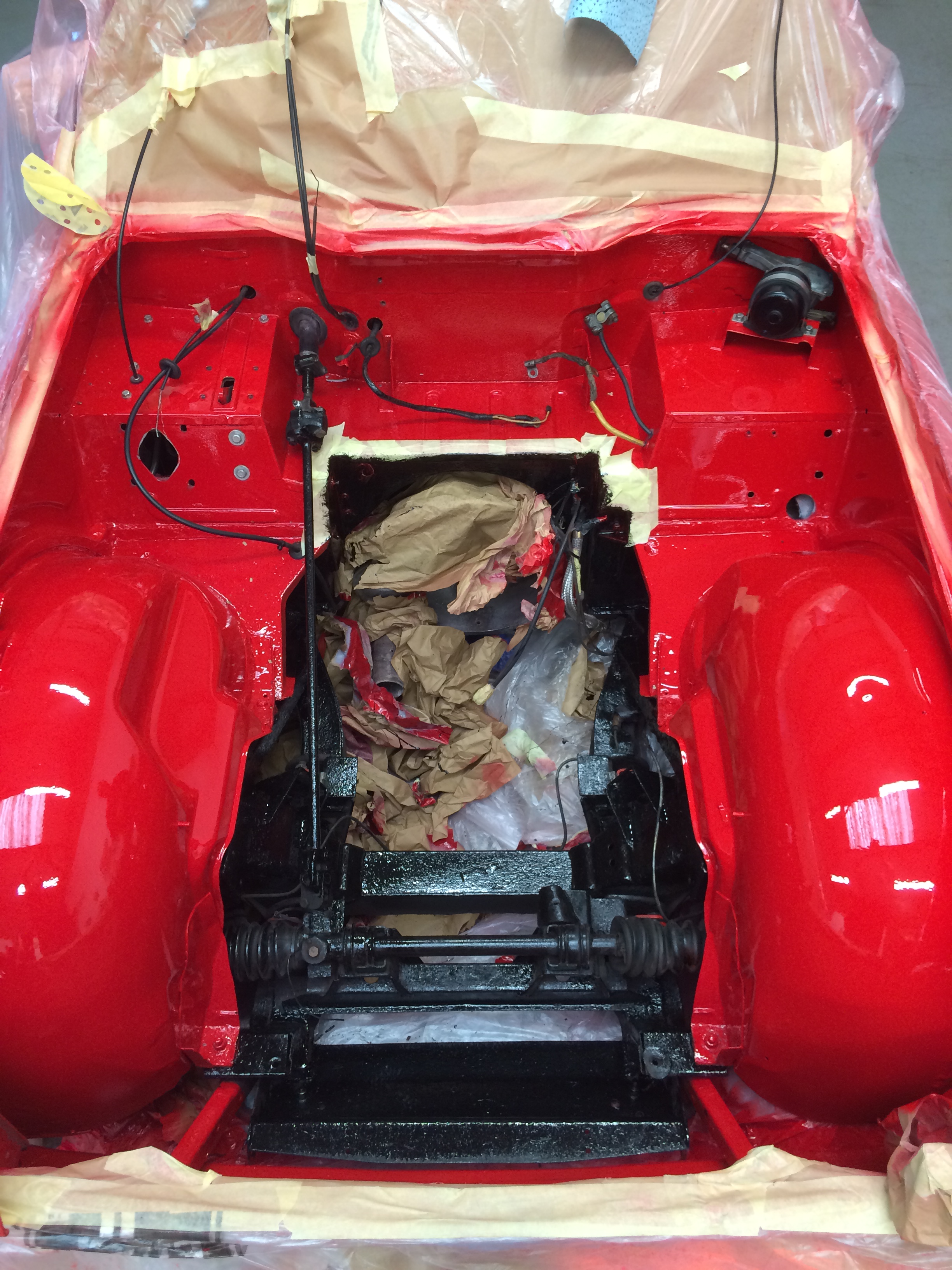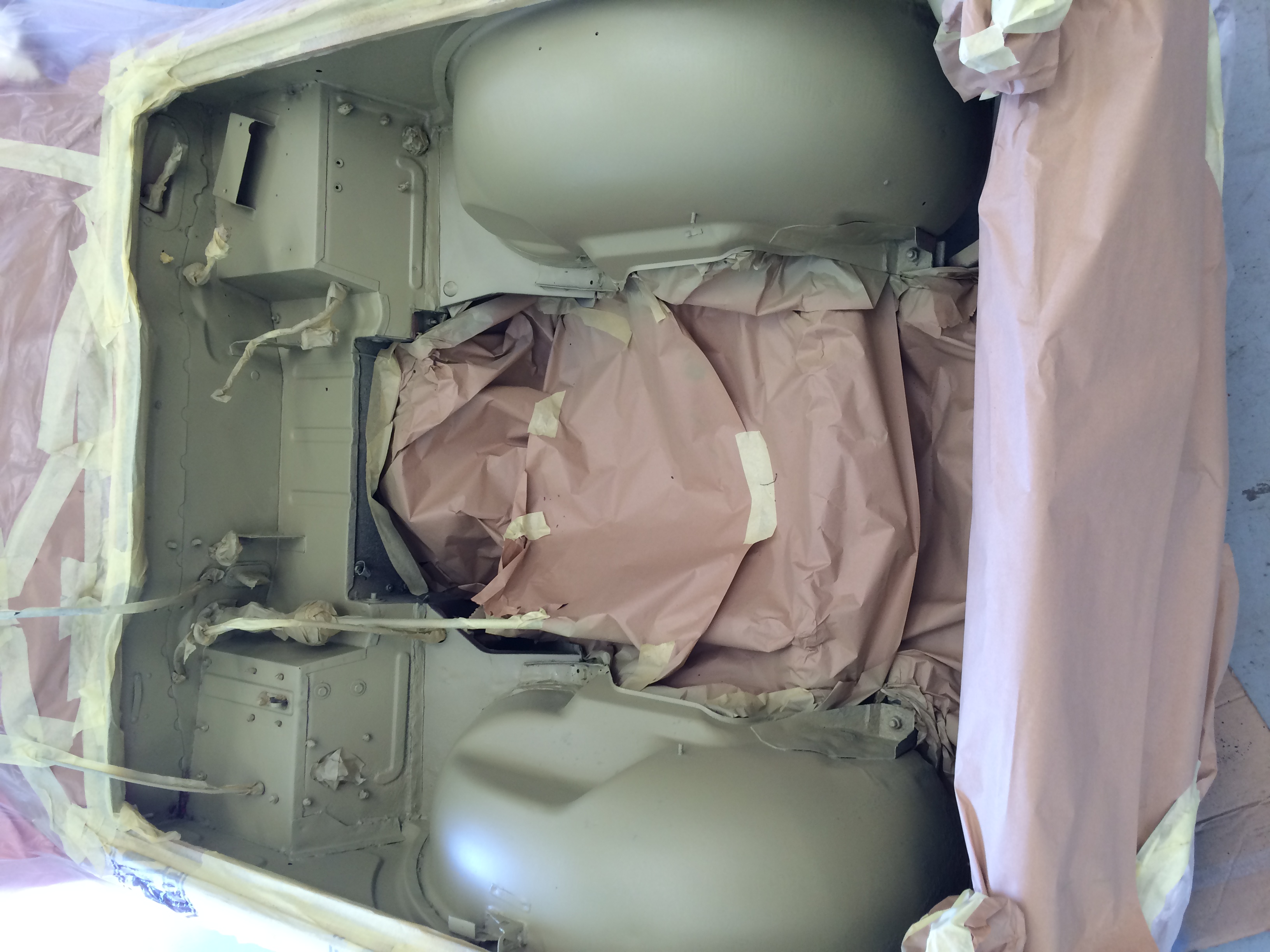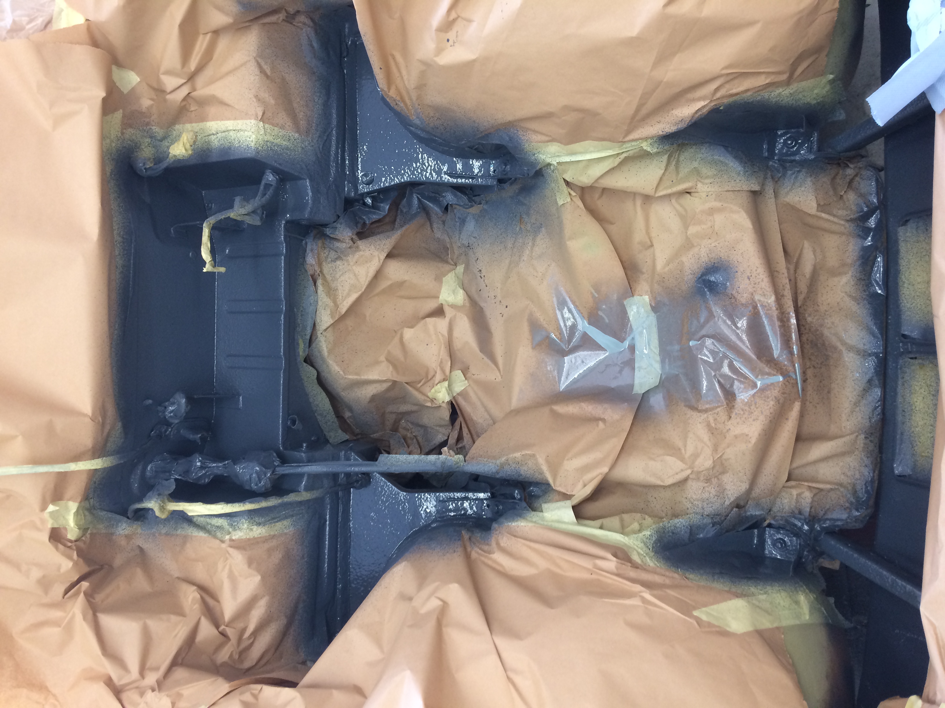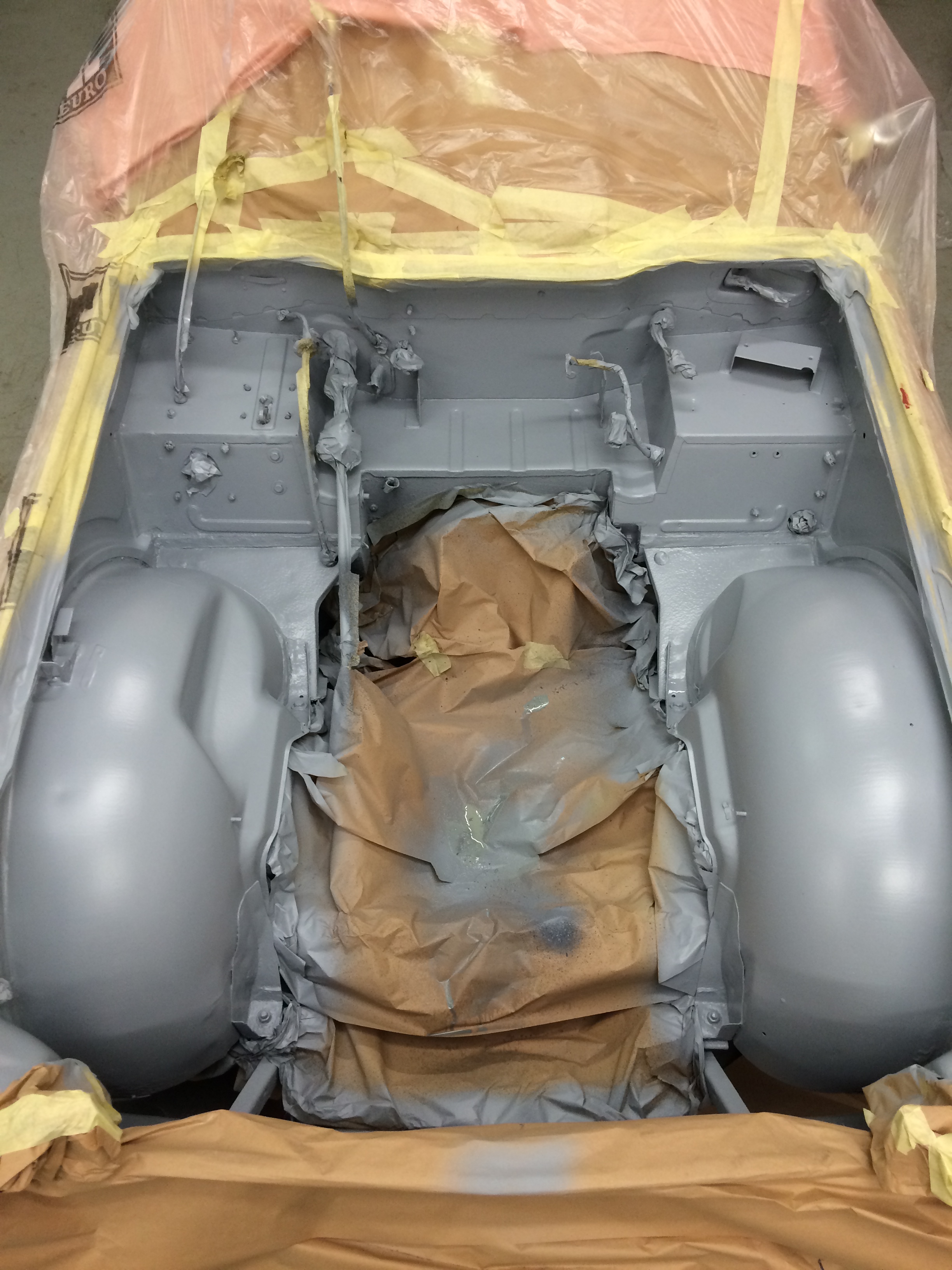 Removed engine, removed paint and media-blast corroded areas. Welding repairs completed prior to complete respray of the engine bay.